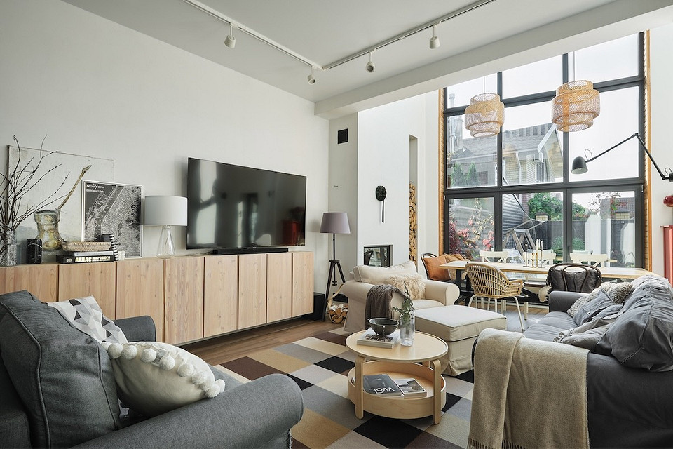 - — важнейшие составляющие интерьера: большие тёплые пледы, камин, мягкая мебель.